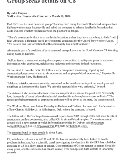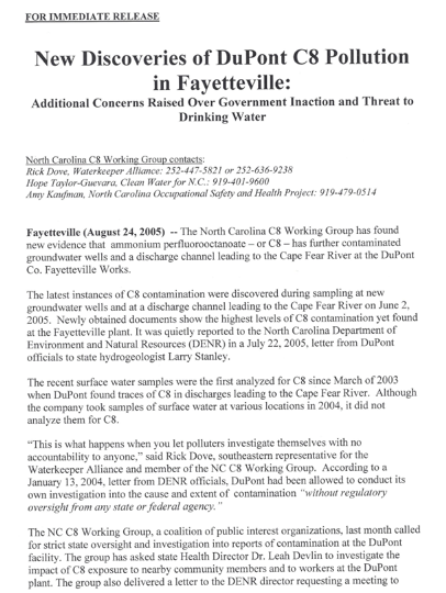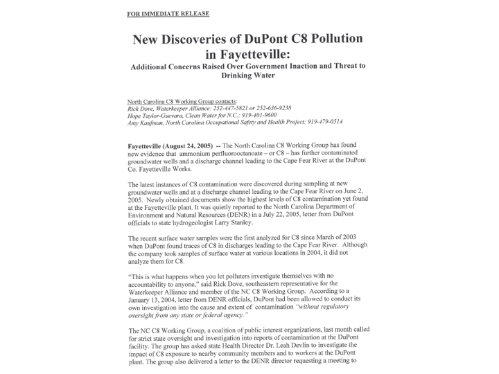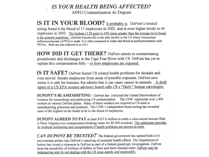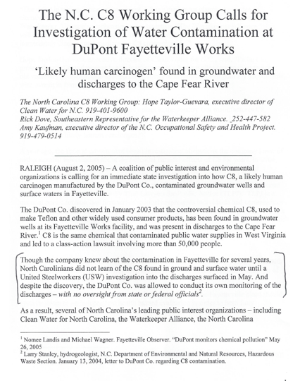 N.C. Working Group calls for investigation of water contamination of DuPont Fayetteville Works