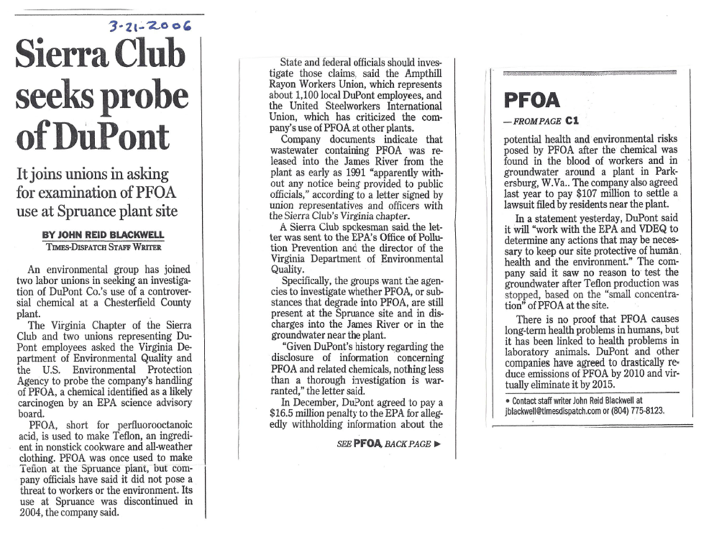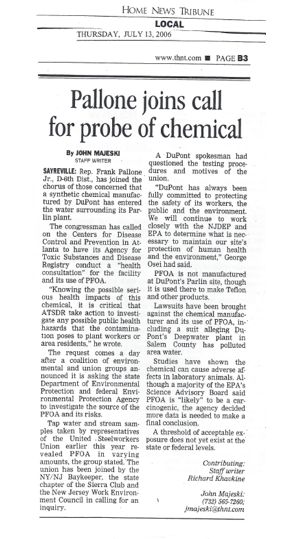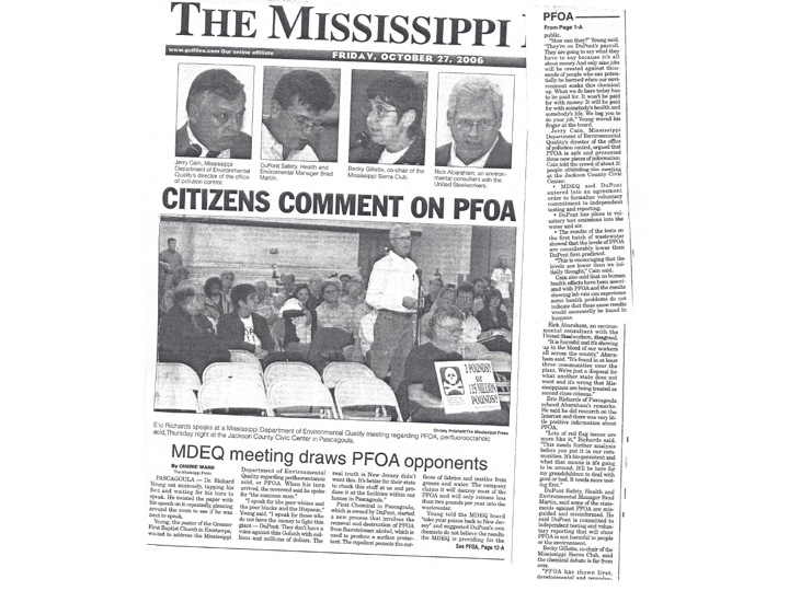 PFAS (C-8) Contamination in North Carolina, Virginia, Mississippi, Ohio, New Jersey