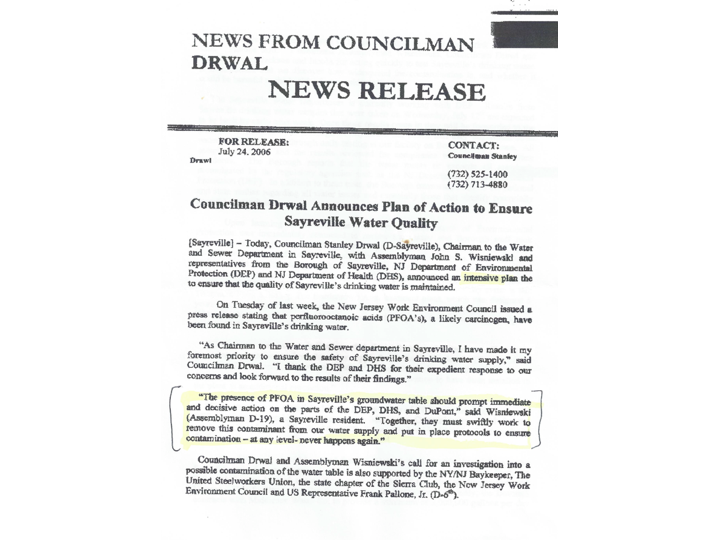 Councilman Drwal announces plan of action to ensure Sayreville water quality