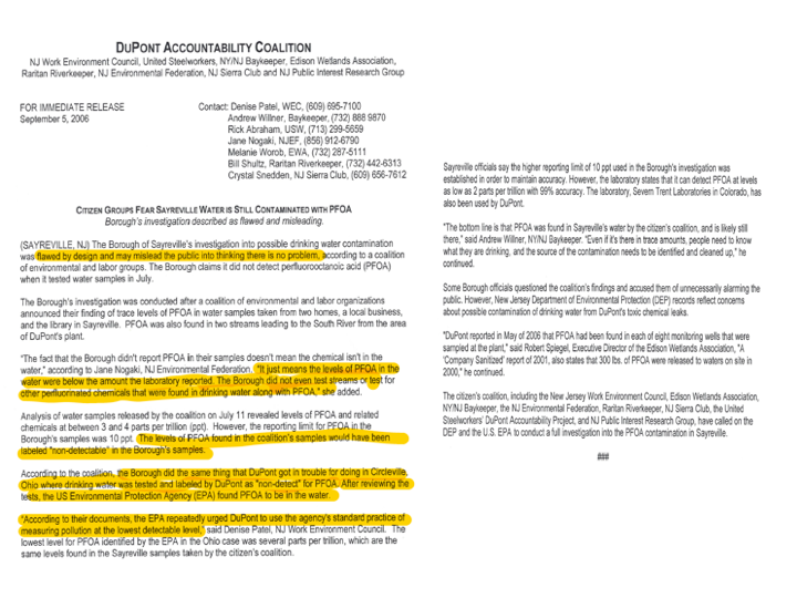 Citizen groups fear Sayreville water is still contaminated with PFOS