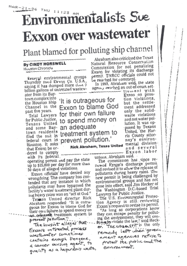 Environmentalists sue Exxon over wastewater