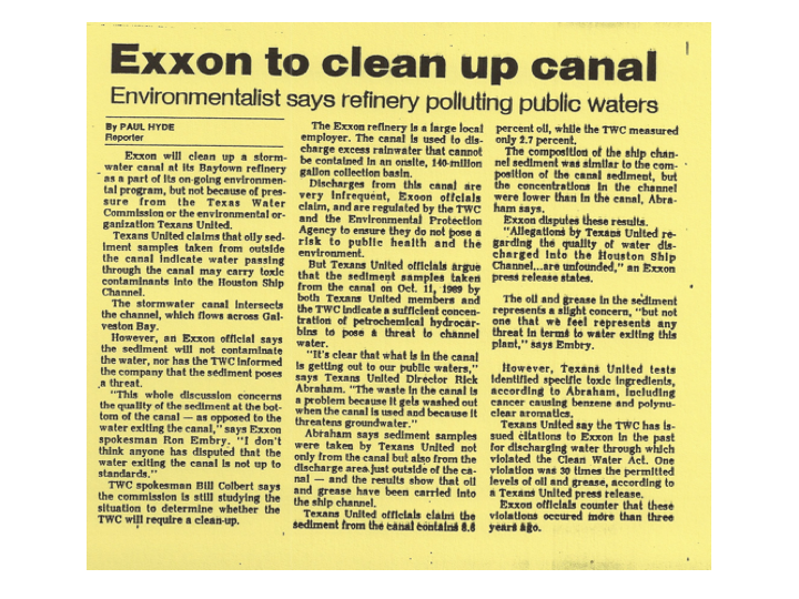Court ordered inspection, Exxon Refinery – Texans United director and board members video Exxon
