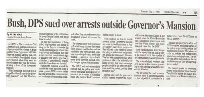 Bush, DPS sued over arrests outside Governor’s Mansion